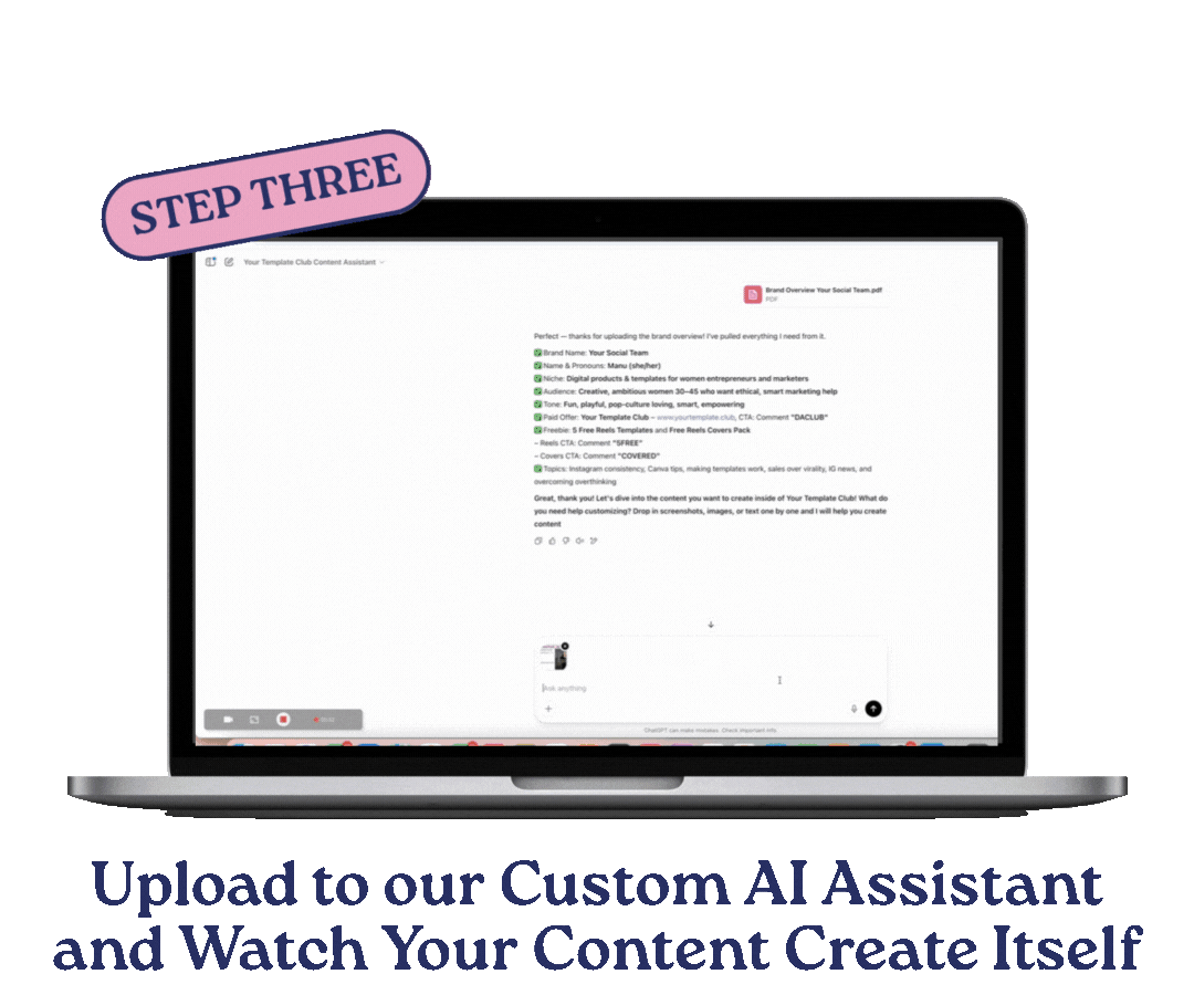 Plus, a pro-level Content Calendar every month — with post ideas, matching Canva templates, captions, and your own AI assistant to help you customize.