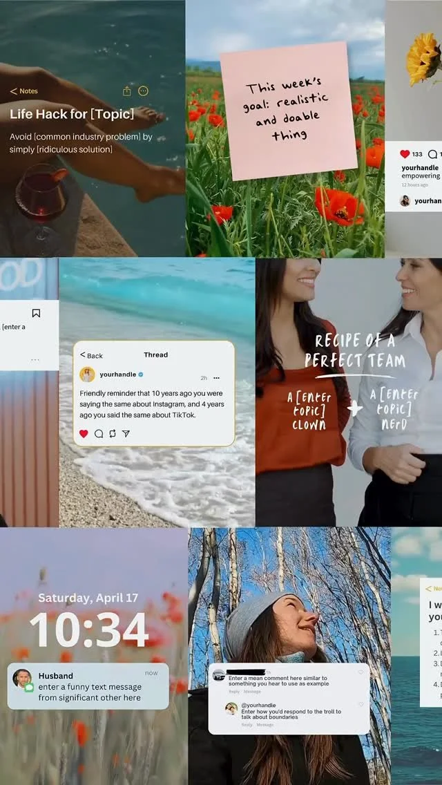 A done-for-you content plan for the next month with our existing templates and with matching captions. Whether you batch or post stay consistent, and spend more time creating (and less time guessing).